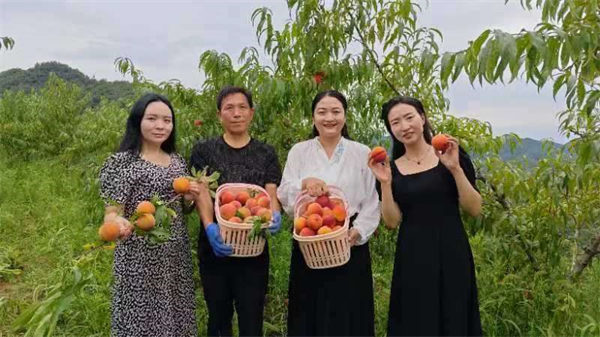 “哇!這桃子太多了,齊天大圣來(lái)了都舍不得走?诟胁诲e(cuò),連蜜蜂都喜歡吃,F(xiàn)在兩三萬(wàn)斤黃桃已經(jīng)成熟,急待銷售,歡迎廣大朋友們前來(lái)采摘!”“這漫山遍野的桃子,個(gè)頭大、味道鮮美,急待銷售,在這里采摘桃子,不僅可以吃到新鮮的桃子,還可以欣賞到美麗的風(fēng)景”……賢話多多、錦園花開(kāi)英子、王蓉顧不上休息,走進(jìn)桃園,通過(guò)直播、抖音、短視頻幫助陳顯攀推銷黃桃。當(dāng)天,網(wǎng)上下單訂購(gòu)300余公斤,詢問(wèn)地址上山采購(gòu)的人也陸續(xù)到來(lái),陳顯攀焦躁的心情得到緩解。
