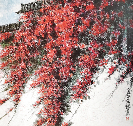 寇宗鄂:由于我的先天不足和后天缺失,讀書雜而不精,僅憑悟性和直覺對待藝術。我學工藝美術,需要運用多種表現(xiàn)手法,包括進口材料及吸取西畫的造型與色彩。有段時期批判封資修,停止古畫的臨摹復制。我多數(shù)時間是辦展覽或去工廠、農(nóng)村及部隊,繪制毛主席像和韶山、井岡山風景,全都是油畫。因而具備了中西結合的基礎。幾次出訪對現(xiàn)代藝術的了解,進一步激活了我創(chuàng)新求變的意識。