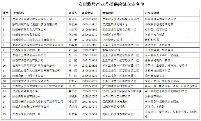 安康涮烤產(chǎn)業(yè)首批供應(yīng)鏈企業(yè)名單(排名不分先后)