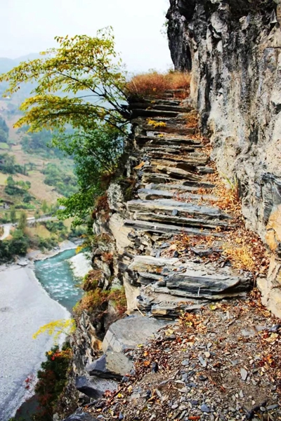 秋天徒步于鎮(zhèn)坪古鹽道,仿若進(jìn)入一個金色的世界。秋日溫煦的陽光透過金色的樹葉灑落在石板上,那一張張金黃的葉子像黃色的蝴蝶,在光與影中飛舞著,這是秋日獨(dú)有的靈動。