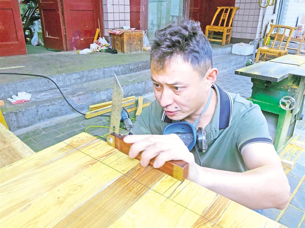 隨著工業(yè)化的發(fā)展,現(xiàn)在定做全套家具的人少了,更多的是做一些長條桌、馬扎、靠背椅子、菜墩子等等,像鼓樓西、東關(guān)一些傳統(tǒng)老字號(hào)餐飲店里用的就是馬金平做的桌椅,看起來古樸、坐起來舒服。