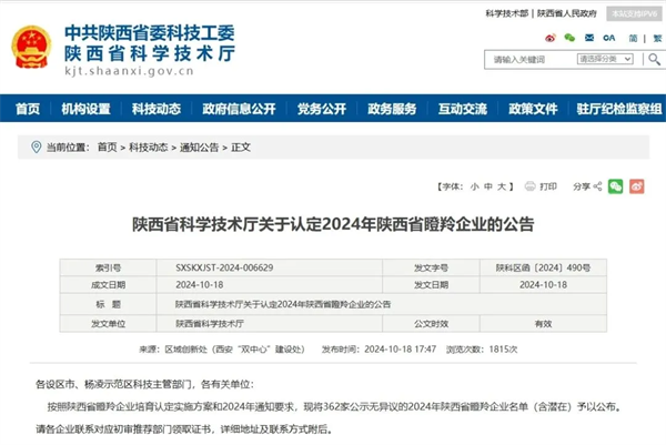 10月18日,陜西省科學(xué)技術(shù)廳公布了2024年度陜西省瞪羚企業(yè)名單,經(jīng)過層層篩選和嚴格評審,安康大數(shù)據(jù)公司成功入選“陜西省瞪羚企業(yè)”榜單。eFv安康新聞網(wǎng)