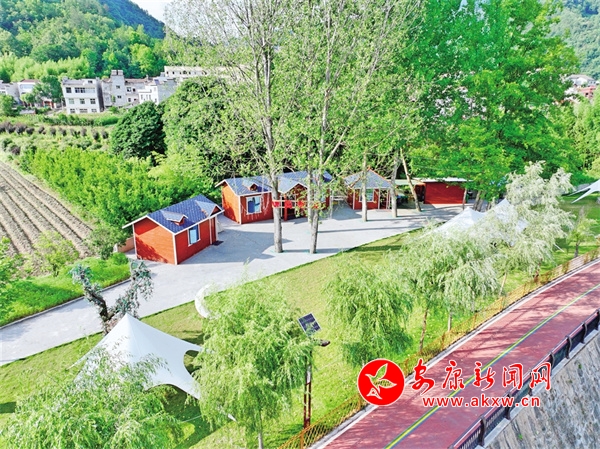 在東壩村,東方野舍露營基地依河而建,在郁郁蔥蔥之中開辟出一處世外桃源,入住東方野舍,流水在耳邊叮咚作響,燒烤的香氣撲鼻而來;赝巳藲,也帶來了財氣,在這里固定務工的村民年收入超過3萬元。
