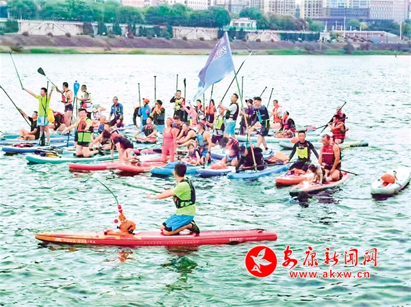 近年來(lái),安康的水上運(yùn)動(dòng),尤其是槳板運(yùn)動(dòng)吸引了越來(lái)越多的人關(guān)注,以其能促進(jìn)人的反應(yīng)能力、四肢協(xié)調(diào)能力、平衡能力等特點(diǎn)成為安康“最熱門(mén)”的水上運(yùn)動(dòng)之一,更多市民主動(dòng)參與其中,在運(yùn)動(dòng)中收獲健康和快樂(lè)。很多人在岸邊看見(jiàn)了槳板也會(huì)主動(dòng)上前詢問(wèn),這讓吳忠很高興,他說(shuō),從一開(kāi)始的門(mén)可羅雀到現(xiàn)在槳板群的群友已經(jīng)有220多個(gè)人,槳板運(yùn)動(dòng)的魅力讓更多人遠(yuǎn)離了麻將桌、酒桌,放下了手機(jī),意識(shí)到了鍛煉身體的好處。醫(yī)生、警察、個(gè)體經(jīng)營(yíng)者、普通職員……各行各業(yè)的人因?yàn)榕d趣加入了槳板運(yùn)動(dòng)的隊(duì)伍之中,又把槳板的魅力推向更多人,大家彼此介紹、互相熟悉了解,在收獲友誼和健康的同時(shí),逐漸組成了一個(gè)“槳板社會(huì)”。