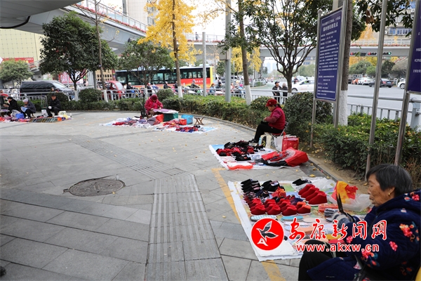 12月3日,記者來到巴山東路的天橋下面,現(xiàn)場規(guī)范有序,城管執(zhí)法人員正耐心引導(dǎo)商販,在規(guī)定區(qū)域內(nèi)擺放售賣的手工藝制品以及小商品。