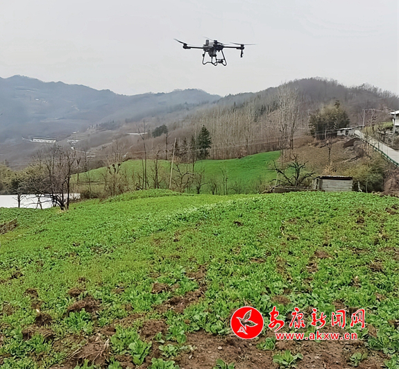 眼下正值春季管護(hù)黃金期,在白河縣冷水鎮(zhèn)興隆村糧油示范田里,無人機(jī)在油菜田上方來回穿梭,均勻細(xì)密地噴灑農(nóng)肥,抑制病菌繁殖,提高油菜產(chǎn)量。周紫薇 攝