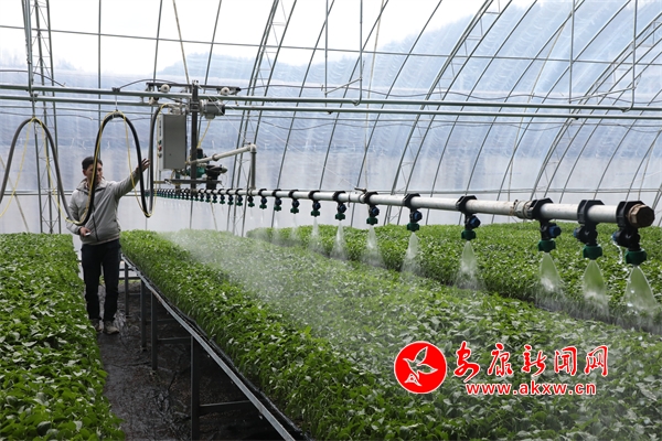 春日的安康市漢濱區(qū)建民街道天瑞塬生態(tài)園區(qū)生機(jī)盎然,智能溫室中的自動(dòng)噴淋澆灌、APP自動(dòng)管護(hù)、機(jī)械化播種,充分展現(xiàn)現(xiàn)代農(nóng)業(yè)科技魅力。鄭時(shí)根 攝
