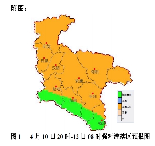 本網(wǎng)訊 4月10日10時,市氣象臺發(fā)布重要天氣報告:受低層切變和西南暖濕氣流影響,4月10日夜間至11日我市有一次強對流天氣過程,期間伴有雷電、短時強降水(10~15毫米/小時,局地可達20毫米每小時以上)、冰雹、陣性大風等對流性天氣。過程累計降水量:10~20毫米,個別鎮(zhèn)辦可達40毫米以上。11日至12日秦巴山區(qū)陣風可達7級以上,全市日最高氣溫下降顯著。