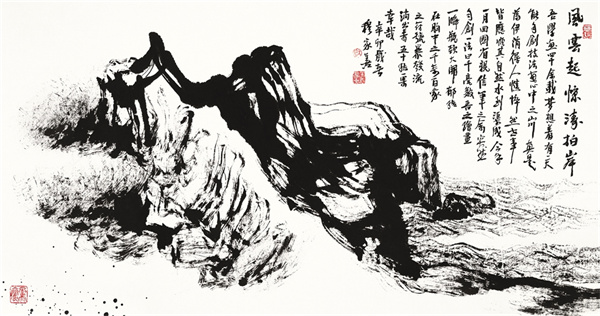 此畫法不僅突破了自己的繪畫瓶頸,還大大拓展了中國(guó)畫創(chuàng)作的疆界,將傳統(tǒng)中國(guó)山水畫與當(dāng)代山水畫連接起來。次年,他的焦墨山水畫《石韻圖》就被收入高等教育“十二五”全國(guó)規(guī)劃教材/中國(guó)重點(diǎn)美術(shù)學(xué)院系列教材《山水畫教程》。