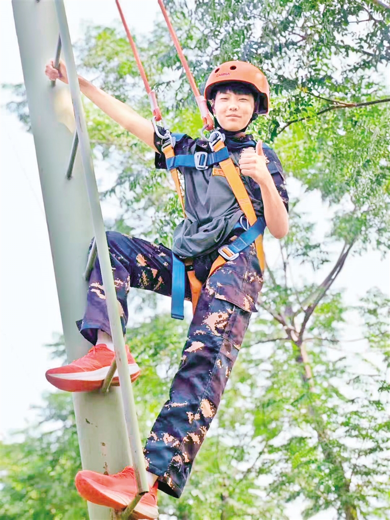 營地的精彩遠(yuǎn)不止訓(xùn)練場。皮劃艇上,孩子們喊著號(hào)子,失衡瞬間伙伴及時(shí)援手,水花與笑聲齊飛;高空架下,系著安全繩的孩子咬牙攀登,登頂揮手的剪影比陽光更耀眼;“泡沫之夏”里,彩色泡沫中的追逐嬉鬧,把夏日的快樂潑灑到極致。