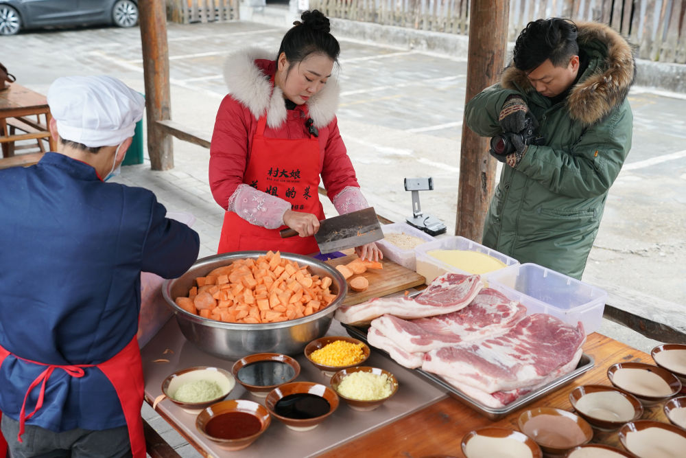 2月21日,在安康市漢濱區(qū),李花(中)在她的農(nóng)家樂(lè)院內(nèi),制作準(zhǔn)備用于網(wǎng)絡(luò)銷售的蒸碗,并拍攝短視頻。李花和丈夫從經(jīng)營(yíng)農(nóng)家樂(lè)起步,后通過(guò)短視頻和直播等方式,在……