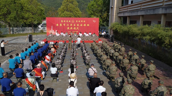 漢濱區(qū)舉行“鐵姑娘”女子民兵排授旗儀式