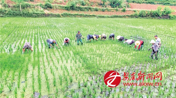6月3日,石泉縣城關(guān)鎮(zhèn)搶抓農(nóng)時(shí),組織人力物力開(kāi)展科學(xué)田管和綠色防控工作,夯實(shí)秋糧穩(wěn)產(chǎn)基礎(chǔ)。圖為絲銀壩村集體經(jīng)濟(jì)合作社組織農(nóng)戶開(kāi)展稻田除草作業(yè)。 董長(zhǎng)松 攝……