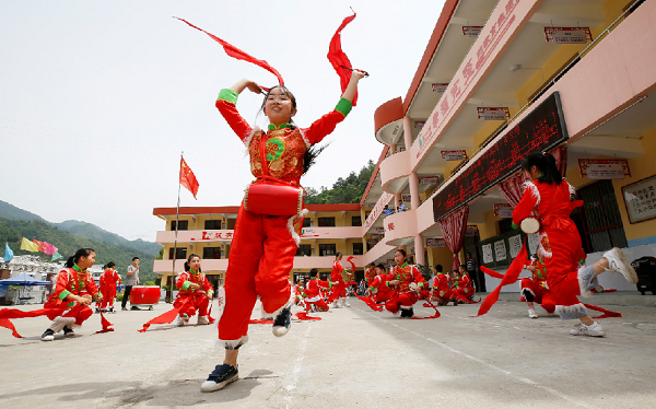 5月26日,陜西省安康市漢濱區(qū)茨溝小學(xué)校園鼓聲如雷,鈸音清脆,鑼鳴鏜鏜。該校高年班同學(xué)為慶祝六一兒童節(jié)開(kāi)始練習(xí)威風(fēng)鑼鼓。據(jù)了解,茨溝小學(xué)的飛天腰鼓社團(tuán)共有……