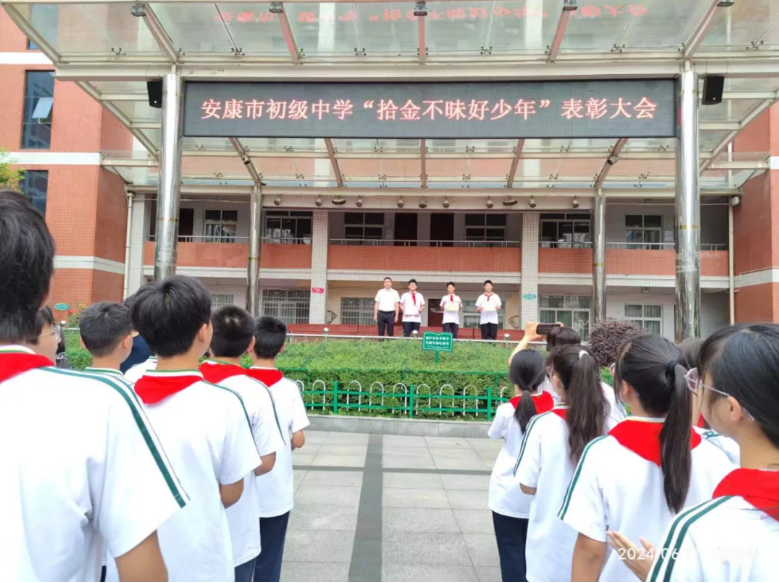 6月17日上午,安康市初級(jí)中學(xué)舉行了一場(chǎng)表彰大會(huì)。表彰我校初一四班景永強(qiáng)、汪正男、馬崇偉三位同學(xué)拾金不昧的行為,并為其頒發(fā)獎(jiǎng)狀,引導(dǎo)全校師生學(xué)習(xí)這種拾金不昧的優(yōu)良品質(zhì),將傳統(tǒng)美德內(nèi)化于心,外化于行。