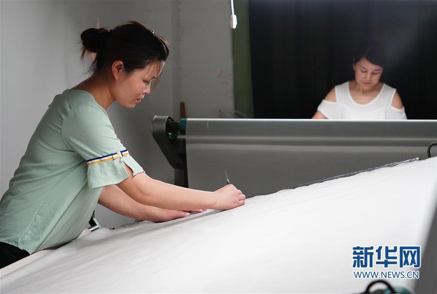 7月19日,工人在石泉縣陜西天成絲業(yè)有限公司檢驗(yàn)車間內(nèi)檢驗(yàn)修布。新華社記者 邵瑞 攝