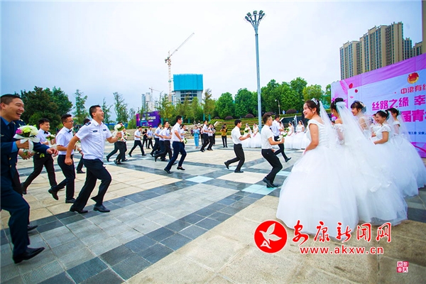 來自絲路沿線城市西寧、西安、渭南、商洛、山西呂梁、江蘇徐州和安康各縣區(qū)的25對(duì)新人在全城矚目下舉行婚禮儀式,在中國(guó)最吉祥的地方“安康”,不僅為自己留下難忘一刻,更用實(shí)際行動(dòng)踐行著移風(fēng)易俗社會(huì)主義新風(fēng)尚。