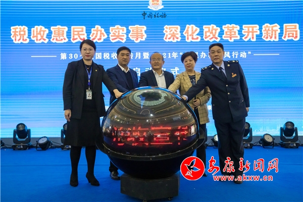 本網(wǎng)訊(通訊員 付明明 張小松)春風(fēng)拂面,稅意暖心。4月1日上午,安康高新區(qū)萬達(dá)廣場內(nèi),在安康市稅務(wù)局聯(lián)合高新區(qū)稅務(wù)局和金融、企業(yè)代表共同舉辦的第30個全國稅收宣傳月暨2021年“便民辦稅春風(fēng)行動”啟動儀式上,隨著安康市稅務(wù)局局長張大峰、高新區(qū)管委會副主任楊凱,安康市稅務(wù)局總會計師汪顯鳳,高新區(qū)稅務(wù)局局長呂世意和安康萬達(dá)廣場商業(yè)管理有限公司總經(jīng)理田玲共同按動啟動球,以“稅收惠民辦實事、深化改革開新局”為主題的稅收宣傳月活動正式開啟。