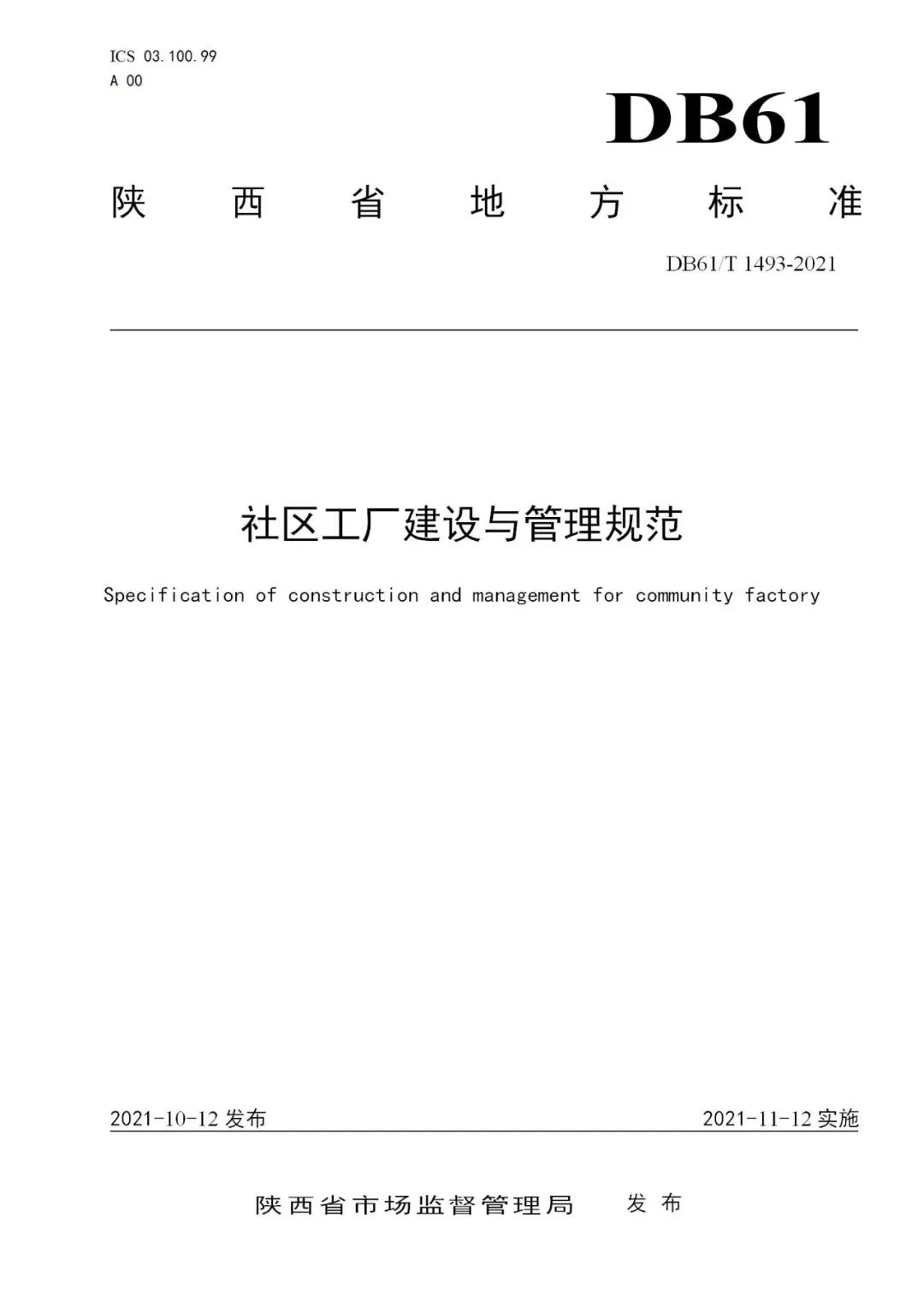 日前,從陜西省市場(chǎng)監(jiān)督管理局獲悉,由安康市人社局提出申請(qǐng),安康市人社局聯(lián)合安康市市場(chǎng)監(jiān)督管理局共同起草的陜西省地方標(biāo)準(zhǔn)《社區(qū)工廠建設(shè)與管理規(guī)范》已于10月12日獲得陜西省市場(chǎng)監(jiān)督管理局批準(zhǔn)發(fā)布。這是繼安康市級(jí)地方標(biāo)準(zhǔn)《新社區(qū)工廠》發(fā)布后,首部在我省范圍內(nèi)發(fā)布的關(guān)于社區(qū)工廠的標(biāo)準(zhǔn),標(biāo)志著我省社區(qū)工廠走上規(guī)范化發(fā)展之路。
