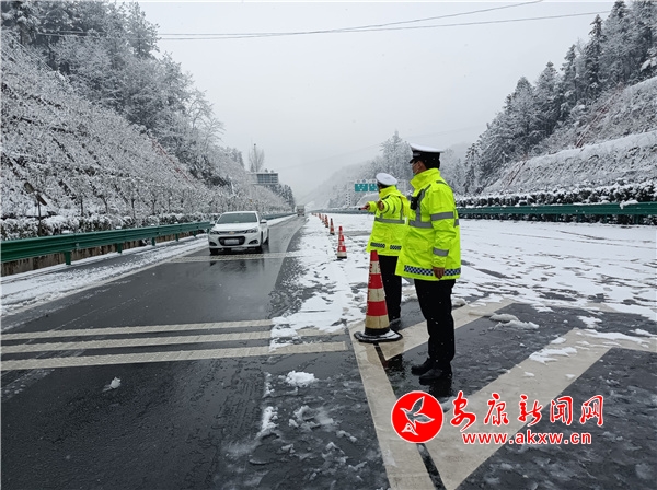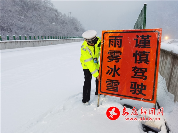 1月28日,我市普降雨雪,部分路段出現(xiàn)大霧、積雪。為有效應(yīng)對(duì)惡劣天氣對(duì)交通安全的影響,安康交警以雪為令,全警動(dòng)員,強(qiáng)化惡劣天氣下的道路交通管控、巡查、事故預(yù)防、保暢通等措施,確保轄區(qū)道路安全暢通和群眾平安出行。(周瑞儒/圖文)FZx安康新聞網(wǎng)