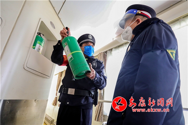 乘警來(lái)鴻在列車上檢查消防器材Zg4安康新聞網(wǎng)