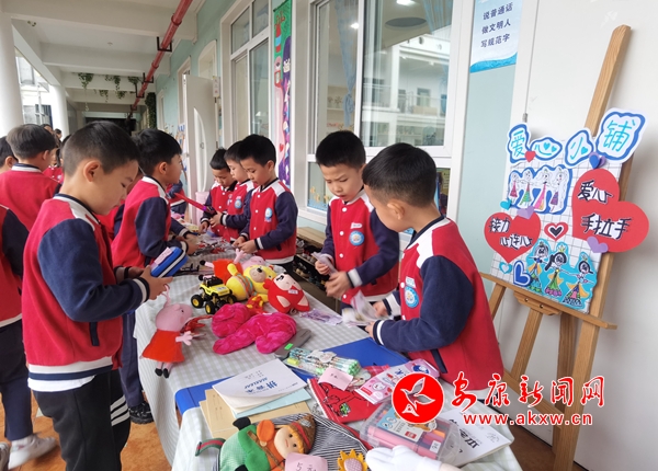 一聲聲稚氣的叫賣、一個個熱鬧的場面、一張張快樂的臉龐,充分展示了“愛心義賣”活動給孩子們帶來的那一份快樂和收獲。活動最后,幼兒將自己買到的物品投進愛心捐贈箱,一起用實際行動向福利院小朋友傳遞力量,奉獻愛心,溫暖童心。