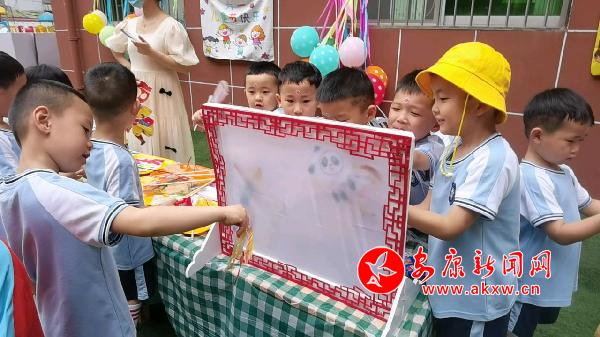 活動現(xiàn)場,除了孩子親手制作的美食,還有眾多有趣的傳統(tǒng)民間游戲。在民間藝術(shù)體驗(yàn)區(qū),小朋友們進(jìn)行了傳統(tǒng)扎染、趣味剪紙、泥塑、陶藝活動體驗(yàn);在皮影小劇場,大班孩子們自導(dǎo)自演的皮影戲也在熱火開播。在輕松、愉悅的節(jié)日氛圍中孩子們體驗(yàn)傳統(tǒng)文化的多彩,感受自主游戲的快樂,也激發(fā)了幼兒對優(yōu)秀傳統(tǒng)文化的興趣,萌發(fā)了民族自豪感。