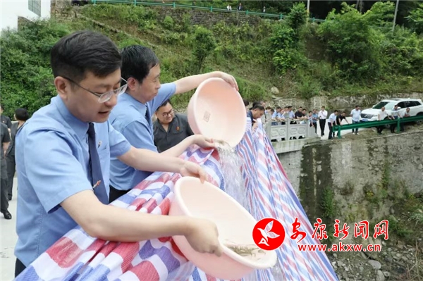 6月5日,在剛剛過去的第51個世界環(huán)境日,安康鐵檢院、安鐵法院、安康市農(nóng)業(yè)農(nóng)村局等單位在紫陽聯(lián)合開展增殖放流活動,用三名被告繳納的野生動物資源損失費購買錢魚魚苗10000余尾,投放在案發(fā)地水域,及時修復(fù)因犯罪行為而受損的任河國家級保護(hù)區(qū)的生態(tài)環(huán)境。