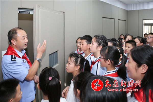 同學(xué)們?cè)诜ň瘞ьI(lǐng)下,依次經(jīng)過(guò)安檢門。更讓同學(xué)們好奇的是法警小哥的警用裝備,同學(xué)們認(rèn)真聆聽(tīng)法警對(duì)每樣警用裝備的講解,還不時(shí)發(fā)問(wèn),興趣盎然。隨后,同學(xué)們依次參觀了法庭、羈押室和全國(guó)維護(hù)婦女兒童權(quán)益先進(jìn)集體工作室,對(duì)法庭開(kāi)庭審理案件、羈押犯罪嫌疑人和保護(hù)婦女兒童權(quán)益等知識(shí)有了更深入的認(rèn)識(shí)和了解。