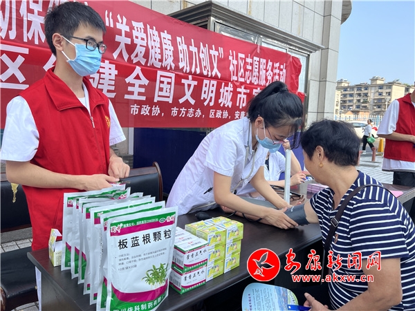 活動現(xiàn)場,醫(yī)務(wù)人員為社區(qū)居民聽診、測量血壓,耐心地詢問他們的身體狀況并進行健康指導,免費發(fā)放了板藍根顆粒、藿香正氣水等常用藥品。向前來義診的居民發(fā)放健康宣傳資料,講解了高血壓、糖尿病、婦女兒童健康保健知識以及定期檢查身體的重要性,倡導居民積極樂觀的生活態(tài)度,養(yǎng)成健康生活習慣。