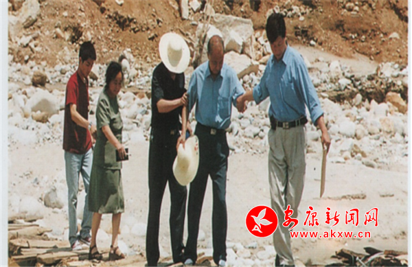 在救災的過程中,熊邦高有時會面臨生命危險。那天從石泉救災返回安康已是午后,行至一橋橋頭,熊邦高提出要去漢濱區(qū)瀛湖鎮(zhèn)查看災情(瀛湖鎮(zhèn)前幾天也遭暴雨襲擊)。當時去瀛湖鎮(zhèn)只有江南一條經吉河向西的路,當他們乘坐的小車行至吉河往西幾公里的地方時,險情發(fā)生了!車前突然由山上滑落下一整塊比小車還大的石頭擋住了去路。車剛停下,車后的泥石流飛馳而下,截斷了后路。汽車的輪胎被埋在泥石流中,車不能動,人不能出。無助之下,他們只好先電話求救,但因泥石流阻隔,人車都無法向他們靠攏。再向市公路部門求援,待挖掘機和鏟車趕到現場,先清理了車后的泥石流,又用炸藥炸碎了車前的巨石,這才得以脫險。