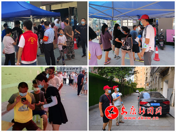 8月16日16時,太陽火辣辣地直射地面,安康市區(qū)街道酷熱難耐。在北門社區(qū)面粉廠家屬院第一輪核酸檢測采樣現(xiàn)場,安康市公路局下沉的5名志愿服務隊員各司其職、各盡其責,助力核酸檢測高效有序完成。