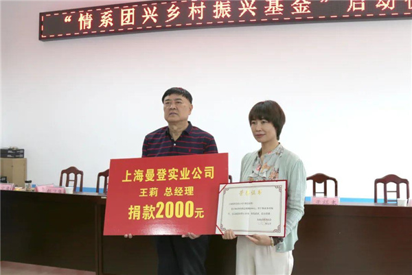 今年5月31日上午,上海曼登實(shí)業(yè)有限公司董事長(zhǎng)于登玉一行來(lái)到旬陽(yáng)市小河鎮(zhèn)留守兒童關(guān)護(hù)中心,為資助“設(shè)施更新項(xiàng)目”捐款5萬(wàn)元。