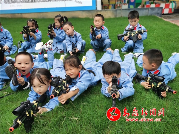 走紅軍之路,鑄愛國之魂。 小小“解放軍”們在老師的引導下,鏗鏘有力地喊著口號,動作整齊而有力,奮力完成挑戰(zhàn)。飛奪瀘定橋、翻山越嶺、炮火連天,小朋友們個個神氣十足,儼然是一個英勇的小戰(zhàn)士。 在體驗中感受革命的艱辛,追尋紅色信仰,弘揚愛國情懷。