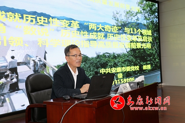 安康經(jīng)濟(jì)領(lǐng)域知名專家馮三俊作題為《“數(shù)說”歷史性成就歷史性變革,高質(zhì)量發(fā)展前景更光明》的講座,從歷史性成就歷史性變革“兩大奇跡”與十三個領(lǐng)域、三個視角“數(shù)說”歷史性成就歷史性變革、新思想引領(lǐng)科學(xué)理論指導(dǎo)高質(zhì)量發(fā)展前景光明三個層面為大家進(jìn)行了精彩的宣講。