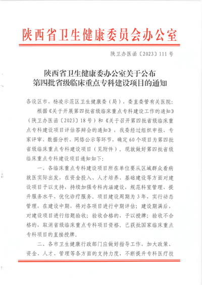 近日,陜西省衛(wèi)健委辦公室印發(fā)了《關(guān)于公布第四批省級臨床重點?平ㄔO(shè)項目的通知》,市中心醫(yī)院神經(jīng)外科、傳染病科和檢驗醫(yī)學(xué)科入選第四批省級臨床重點?平ㄔO(shè)項目。截至目前,我院共有省級臨床重點?2個(心血管內(nèi)科、新生兒科),省級臨床重點?平ㄔO(shè)項目10個(神經(jīng)內(nèi)科、呼吸與危重癥醫(yī)學(xué)科、泌尿外科、醫(yī)學(xué)影像科、消化內(nèi)科、麻醉科、護(hù)理學(xué)、神經(jīng)外科、傳染病科、檢驗醫(yī)學(xué)科)。