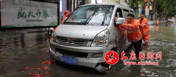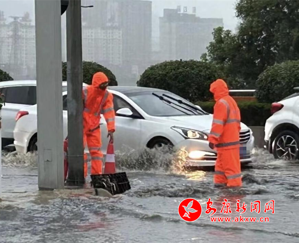 在安康城區(qū)棗園路、南環(huán)路(安康學(xué)院圖書(shū)館前、市委門(mén)前)、育才路(陽(yáng)光學(xué)校前)、大橋路(喜盈門(mén)超市前)、興安路(江華城前)、漢江一橋北轉(zhuǎn)盤(pán)、安旬路口、江北大道(九華飯店門(mén)前)等9個(gè)易澇風(fēng)險(xiǎn)點(diǎn)位,市、區(qū)聯(lián)動(dòng),領(lǐng)導(dǎo)靠前指揮,搶險(xiǎn)隊(duì)員們正奮力接篦排澇,他們不顧浸水的雨鞋、濕透的衣衫,不懼臟臭,揭開(kāi)雨水篦、堅(jiān)守井邊,持續(xù)清除井蓋上的阻水雜物,加速排水。