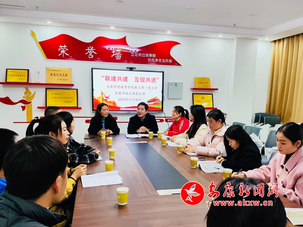 本網(wǎng)訊(通訊員 王國(guó)穎)11月30日,安康學(xué)院教育學(xué)院教工第一黨支部與安康市幼兒園黨支部聯(lián)合開展“聯(lián)建共建 互促共進(jìn)”主題黨日活動(dòng)。