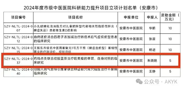 立項(xiàng)二:藥線點(diǎn)灸聯(lián)合絞股藍(lán)茶在黃素瘤應(yīng)用項(xiàng)目獲陜西省中管局市級(jí)中醫(yī)醫(yī)院科研能力提升項(xiàng)目(朱曉艷、袁銘悅)