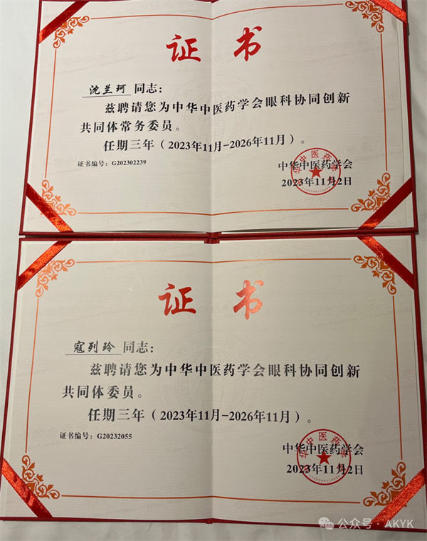 眼科醫(yī)院首席專家沈蘭珂教授被聘為中華中醫(yī)藥學(xué)會(huì)眼科協(xié)同創(chuàng)新共同體常委和陜西省中醫(yī)藥學(xué)會(huì)眼科專委會(huì)顧問(wèn)、眼科醫(yī)院院院長(zhǎng)寇列玲被聘中華中醫(yī)藥學(xué)會(huì)眼科協(xié)同創(chuàng)新共同體委員和陜西省中醫(yī)藥學(xué)會(huì)眼科專委會(huì)副主任委員、陜西省中西醫(yī)結(jié)合學(xué)會(huì)整形美容專委會(huì)副主任委員,并獲陜西省中西醫(yī)結(jié)合藥學(xué)會(huì)先進(jìn)工作者;陜西省保健學(xué)會(huì)防盲專業(yè)委員會(huì)先進(jìn)委員、陳利、王滿華、吉夢(mèng)、張亞榮、周楊、張祥等10余人新增省中醫(yī)藥學(xué)會(huì)眼科專委會(huì)常委及委員任職。