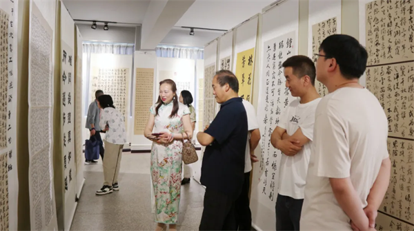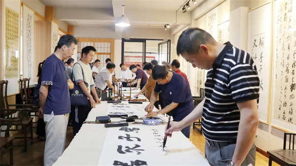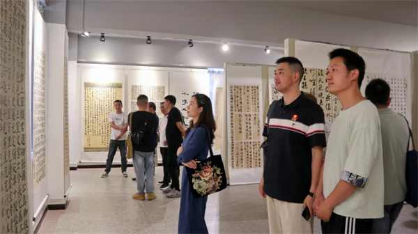 儀式結(jié)束后,全體與會(huì)人員共同前往書(shū)法展廳參觀,相互交流經(jīng)驗(yàn)、研討切磋,現(xiàn)場(chǎng)揮毫潑墨,為活動(dòng)助力添彩。