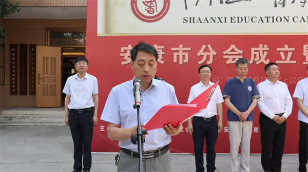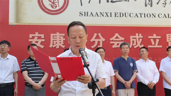 陜西省教育書(shū)法研究會(huì)常務(wù)副會(huì)長(zhǎng)兼秘書(shū)長(zhǎng)馬偉宣讀《關(guān)于成立陜西省教育書(shū)法研究會(huì)安康分會(huì)的批復(fù)》文件。