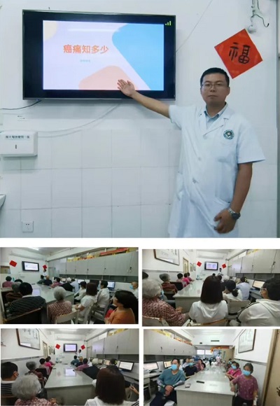 護(hù)士長(zhǎng)馬運(yùn)俠以播放癌痛科普視頻的方式,通過(guò)臨床疼痛案例深入淺出地將癌痛防治知識(shí)分享給大家,現(xiàn)場(chǎng)與患者進(jìn)行了“話療”,消除他們的緊張情緒,幫助他們樹(shù)立抗擊癌痛的信心,科學(xué)的防癌抗癌,受到患者及家屬的一致好評(píng)。