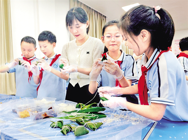 6月4日,市一小三年級5班組織開展了端午節(jié)包粽子親子體驗(yàn)活動(dòng)。記者 楊遷偉 攝