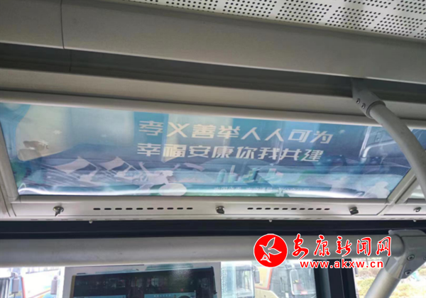 走進(jìn)安康城區(qū)7路公交車廂,印有“孝義善舉人人可為 幸福安康你我共建”等標(biāo)語映入眼簾,車廂內(nèi)的公益廣告宣傳氛圍濃厚,將孝義善舉潛移默化地浸潤到乘客心底。
