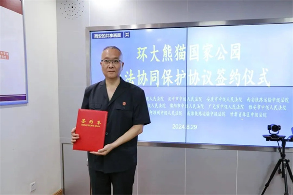《環(huán)大熊貓國家公園司法協(xié)同保護協(xié)議》是按照陜西省、四川省、甘肅省高級人民法院《關于加強大熊貓國家公園司法協(xié)同保護的意見》安排,為切實保護珍貴、瀕危野生動物及其生存環(huán)境,維護生物多樣性,最終形成的司法保護共識。sNS安康新聞網(wǎng)
