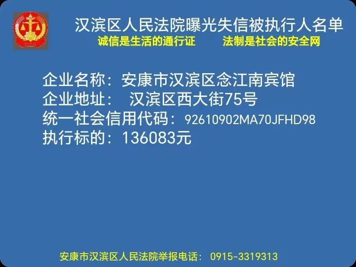 曝光失信 | 安康市漢濱區(qū)人民法院失信被執(zhí)行人曝光名單(2023年第5期)