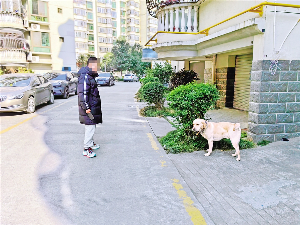 1月26日,我市中心城區(qū)某小區(qū)內(nèi)有市民遛狗不牽狗繩。鄭時(shí)根 攝……
