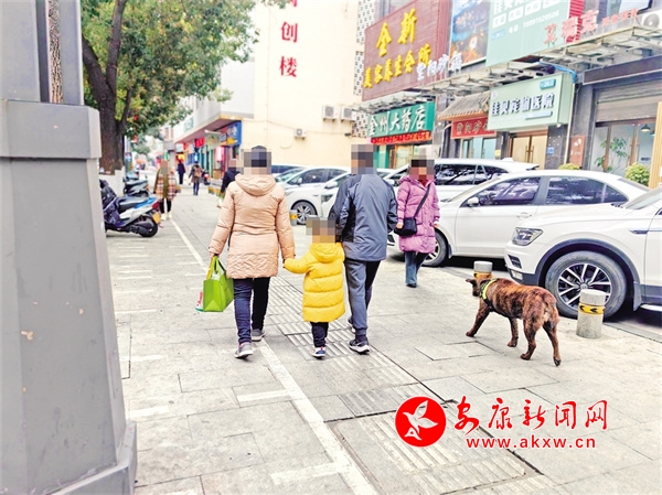 1月30日,安康城區(qū)巴山西路有市民遛狗不栓狗繩。鄭時(shí)根 攝……