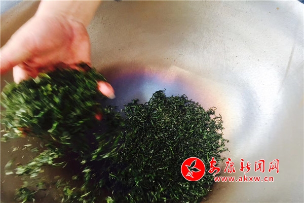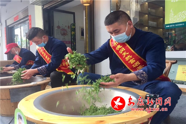 活動現(xiàn)場,三口電炒鍋一字排開,三位炒茶師傅雙手翻飛,嫩綠的鮮葉在他們手中滾動擠壓,揉捻、殺青、焙烘......最終成為我們常見的毛尖茶葉。hNi安康新聞網(wǎng)